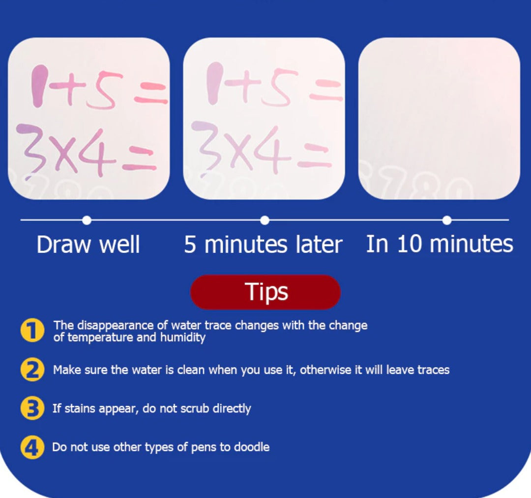 The Magic Water Drawing Mat combines entertainment, learning, and environmental responsibility. Designed for young artists, it provides a safe, clean, and endlessly reusable way for children to explore their creativity while developing essential cognitive skills.
